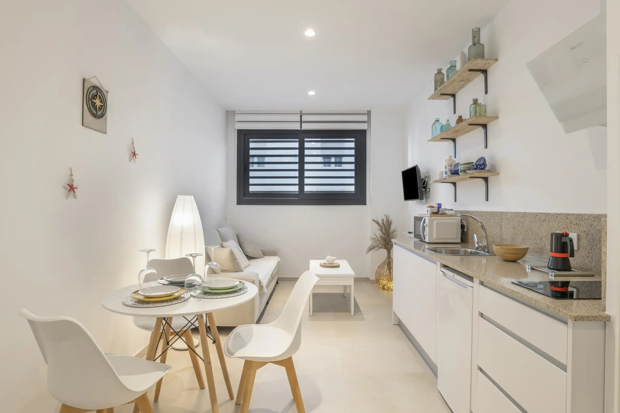 La cocina americana, de inducción, está equipada con nevera, microondas, vajilla/cubertería, utensilios/cocina, cafetera, tostadora, hervidor de agua y exprimidor.