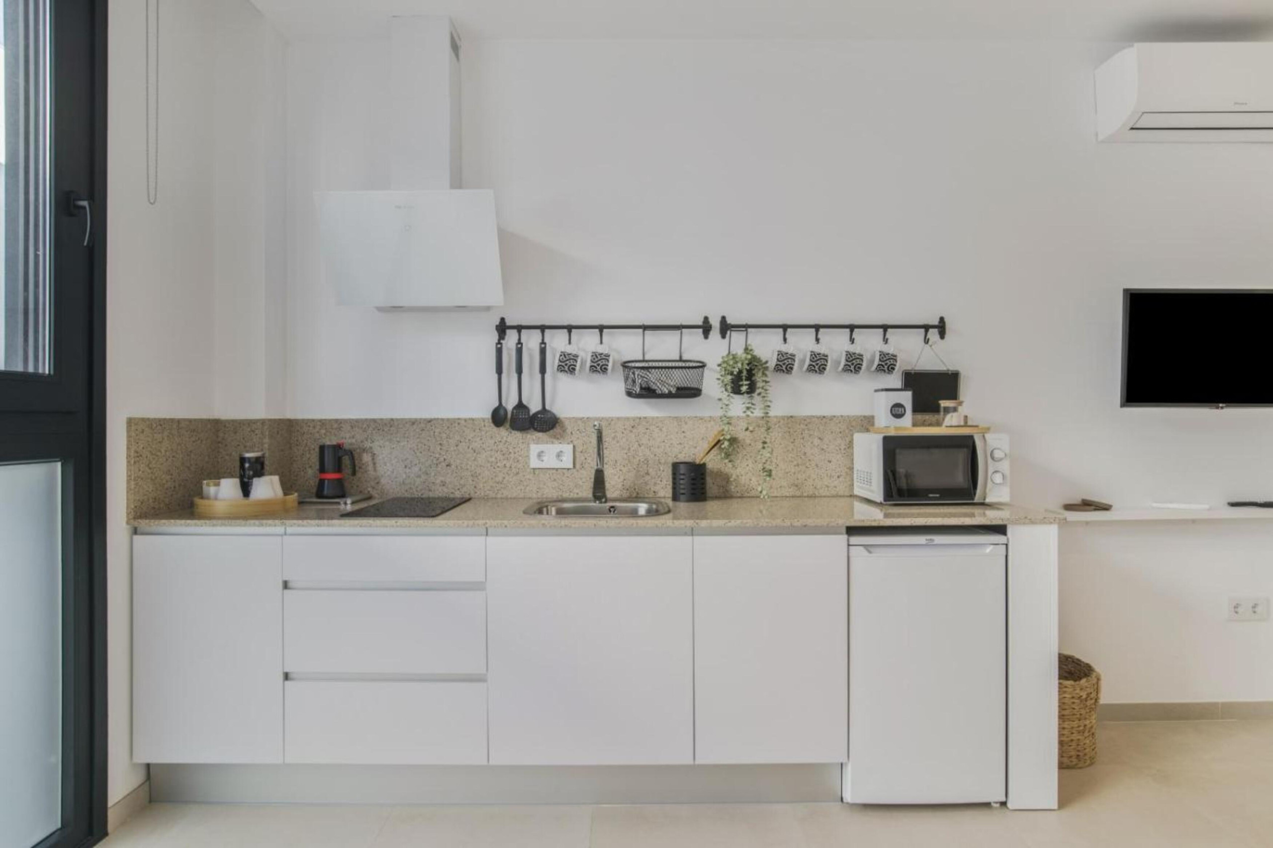 Magnífico estudio en edificio de construcción reciente. Muy luminoso, acogedor, práctico y limpio, con una moderna decoración y totalmente equipado. Ubicado en un barrio tranquilo, cerca del centro y de la playa, es ideal para unas vacaciones relajantes, sin estrés y con todas las comodidades necesarias.
