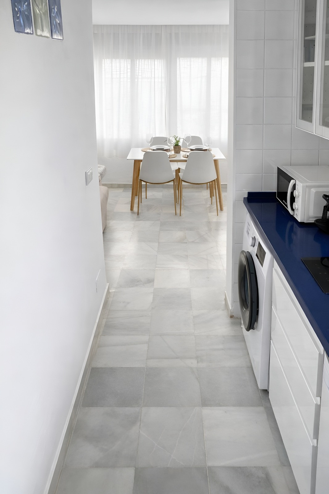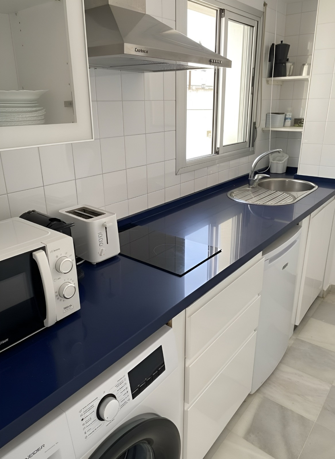 Die Küche ist komplett ausgestattet mit Kühlschrank, Gefrierschrank, Waschmaschine, Kaffeemaschine, Mikrowelle usw. Außerdem verfügt sie über einen Wohn-Esszimmerbereich zum Entspannen oder zum Genießen von Mahlzeiten mit Familie oder Freunden.