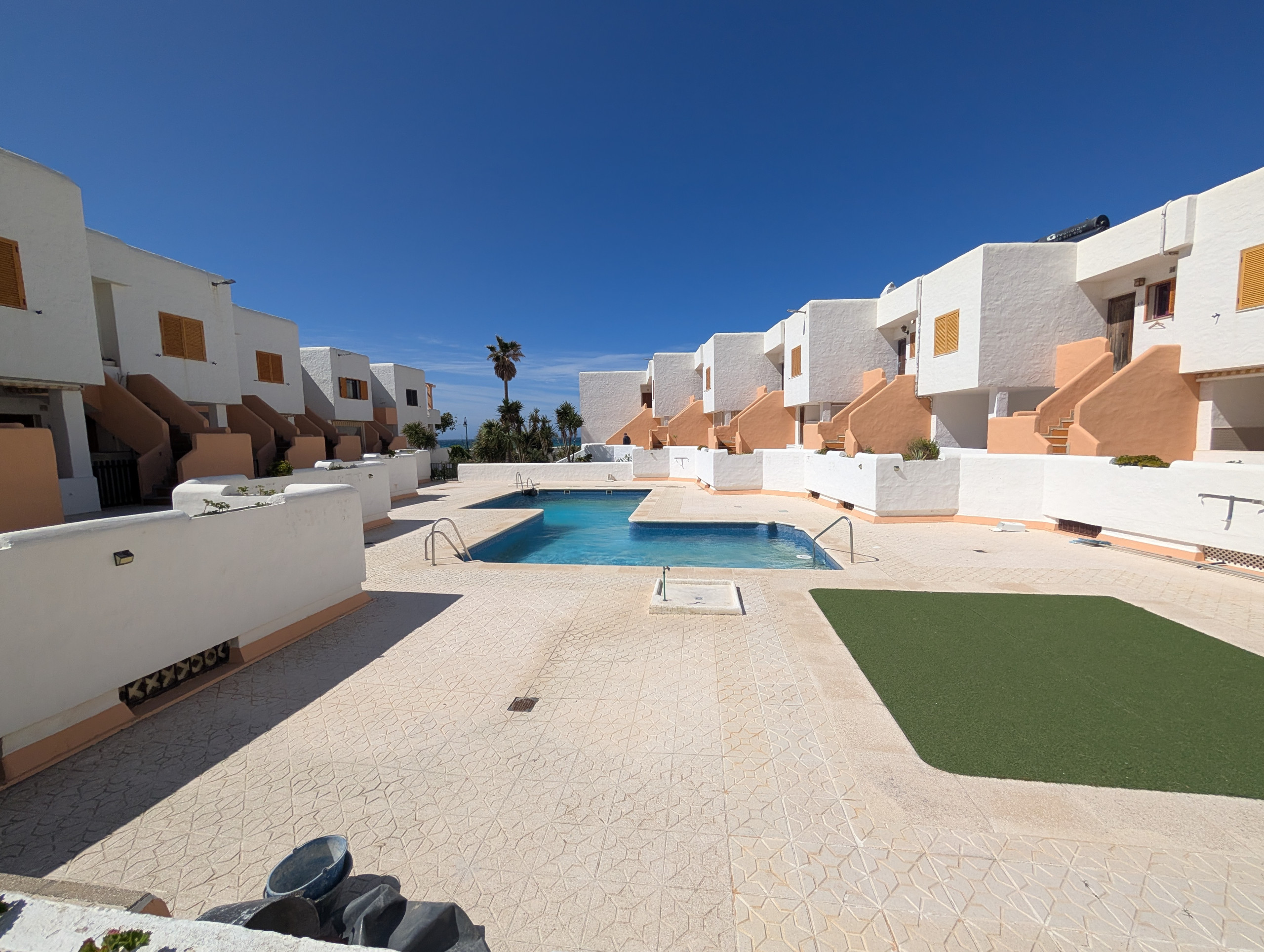 La résidence dispose d'une piscine communautaire disponible en haute saison, idéale pour se rafraîchir et profiter en famille. Une option parfaite tant pour les vacances que pour se déconnecter près de la mer.
